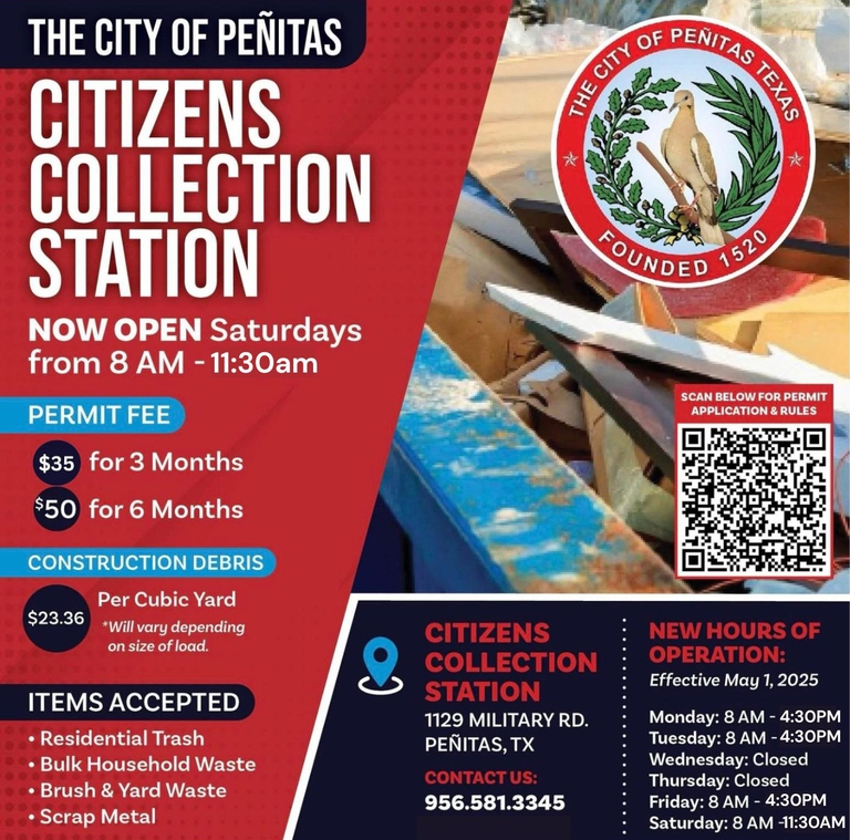 The City of Peñitas Citizens Collection Station Updated Hours of Operation